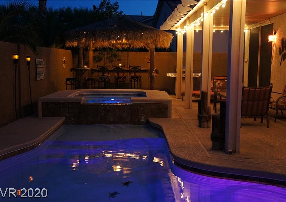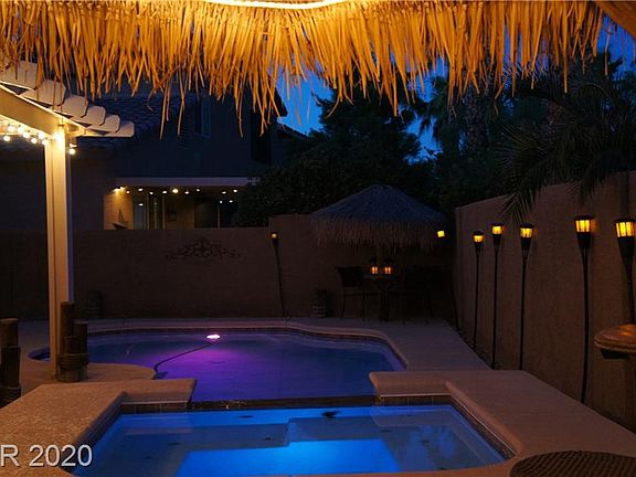 WELCOME TO THIS ISLAND INSPIRED BACKYARD WITH A POOL AND SPA! RELAX UNDER THE TIKKI BAR OR THE COVERED PATIO; OR JUST TAKE A DIP IN THE POOL OR SPA! THIS GREEN VALLEY HOME OFFERS 3 BEDROOMS, 2.5 BATHS, LOFT & 3 CAR GARAGE! AS YOU ENTER THE FRONT DOOR, YOU ARE GREETED BY THE LIT FILLED FORMAL LIVING & DINING ROOMS (USED AS A CASUAL GAME ROOM)! AS YOU CONTINUE, YOU'LL FIND A SPACIOUS FAMILY ROOM W/A FIREPLACE THAT ADDS AMBIANCE TO ANY HOME! THE KITCHEN OPENS TO THE FAMILY ROOM & IS PERFECT FOR ENTERTAINING! THE KITCHEN HAS SS APPLIANCES, A BREAKFAST NOOK, LOTS OF CABINETS & GRANITE COUNTER TOPS TOO! OFF THE KITCHEN IS A SEPARATE LAUNDRY ROOM! AS YOU ASCEND THE STAIRS, YOU WILL FIND THE MASTER BEDROOM WITH EN SUITE BATH, DUAL SINK VANITY, SEPARATE TUB & SHOWER, WALK-IN CLOSET & A MEDIA NICHE! THERE ARE TWO ADDITIONAL BEDROOMS SEPARATED BY THE LOFT & A HALL BATHROOM WITH A DUAL SINK VANITY! THE DISTRICT AT GREEN VALLEY RANCH IS MINUTES AWAY & INCLUDES RESTAURANTS, SHOPPING AND MUCH MORE!
