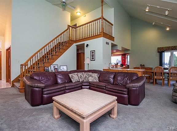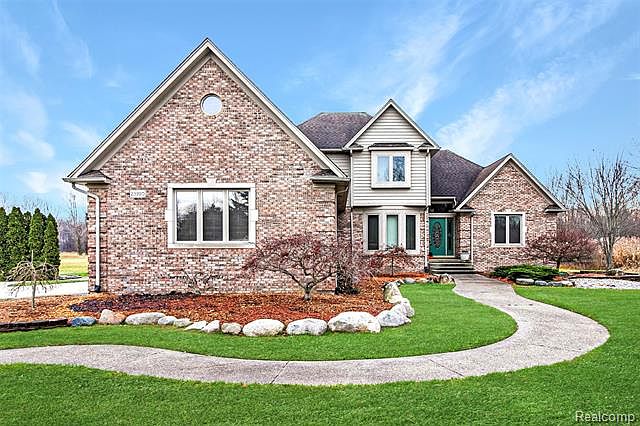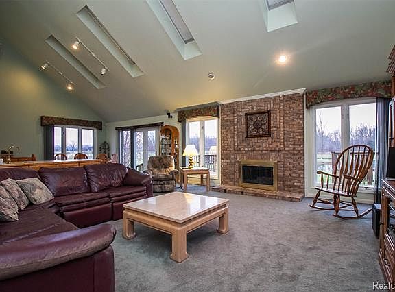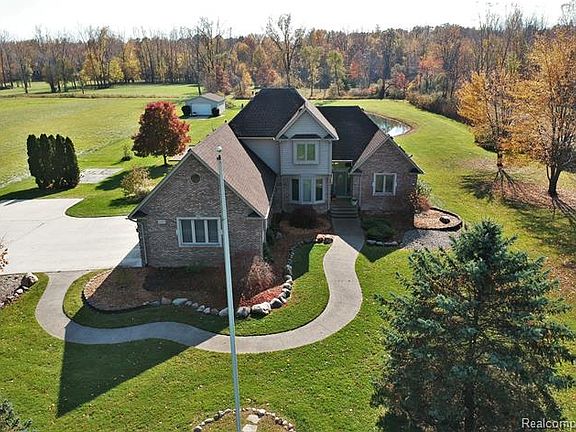 Stunning home in prime location sits on over 3 acres of land with large pole barn, pond, and swing set. This property offers tons of privacy! This home features an open concept floor plan. Living room offers beautiful brick fireplace, several skylights to allow natural light to shine through, and vaulted ceiling. Living room flows nicely into the dining room and kitchen which features tray ceilings and an abundance of cabinet space great for extra storage. Laundry and full bathroom conveniently located on the first floor. Large master bedroom offers tray ceilings, plenty of closet space, and master bathroom with Jacuzzi tub and shower. 2 additional spacious bedrooms with access to full bathroom across the hall. Finished basement offers an additional living space with a kitchenette and space for a living room or recreation area. 3 car attached garage. This home is a must see!