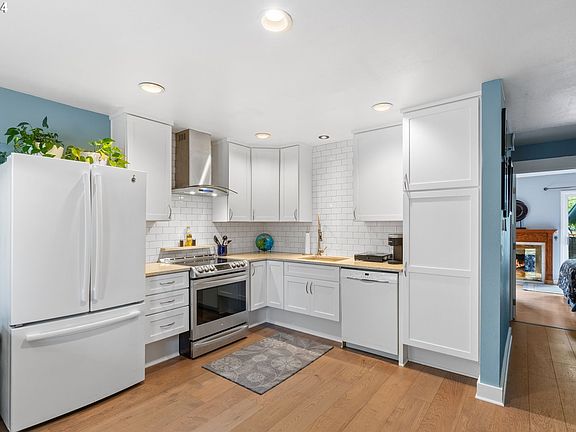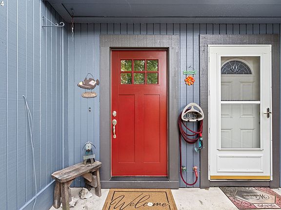 This beautiful first floor totally remodeled home is ADA compliant. Wonderful open floor plan with primary suite on main which includes a spacious bathroom and wood burning fireplace which could easily be converted to gas. This would also be perfect for multi generational. The home as two bedrooms upstairs with bath. Main floor kitchen is ADA easy access custom medallion cabinetry with all appliances including washer/dryer included. Range is convection with remote for range hood. Wonderful dining area with access to enclosed patio which has locked storage. Wonderful deck overlooking green space is in the back and freshly repainted.All vinyl windows except for two. Garden is on side of home and is shared. Put in application with HOA and bring or build your own raised garden bed. Last 2 "holes" of frisbee golf is just across the parking area and within walking distance to park, Edgefield and all it has to offer. Easy access to I-84 too! offer has been received and offers will be presented at 4pm Monday 6/3/2024