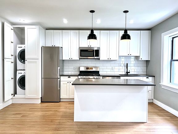 Situated in the Crown Heights historic district and just two blocks to lovely Brower Park, this "Kinko House" has all the charm of its history alongside the convenience of a newly renovated home. The 3rd floor unit is bright and spacious with abundant natural light. The kitchen is wonderfully well equipped with stainless steel appliances and an in-unit washer dryer plus a large center island with seating. The living room area is adjacent and includes a large coat closet. Both bedrooms are amply sized and have a spacious closet in each. The bathroom features a rainfall shower. Bike storage and a storage area are offered in the basement. The apartment shares access to a beautiful roof deck with gorgeous city views. Cats are welcome. (Heat and hot water included. Tenant pays cooking gas and electric.) This marvelous move-in ready home is situated 1-2 blocks from Brower Park, offering an expansive green space and playgrounds, and the Brooklyn Children's Museum. Easing further down the road on the picturesque Eastern Parkway, you will soon find yourself in The Brooklyn Botanic Garden, Prospect Park, The Library at Grand Army Plaza and The Brooklyn Museum. This location is exceptionally convenient as the 2, 3, 4 and 5 trains are all just a couple of blocks away. Be surrounded by top-notch restaurants, cafes and a myriad of shops on Franklin, Nostrand and Kingston Avenues.