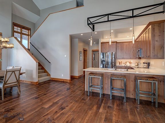 Located just minutes from Big Sky Resort, Alpenglow 23A comes complete with high quality finishes, Lone Peak views, and a spacious floor plan. With a free bus stop located nearby, everything that Big Sky has to offer is accessible to everyone. Alpenglow 23A features 4 bedrooms and 4 bathrooms spread over a three-story layout. Vaulted ceilings in the living and dining room, large windows throughout the property, and a gorgeous rock fireplace create an inviting atmosphere to make you feel home. This brand new residence features radiant floor heating, black stainless appliances, knotty alder doors and trim, beautiful metal accents, high-end lighting packages, two Trex decks, and more. Are you ready to make this Alpenglow condo your primary home, mountain getaway, or rental property? If you're looking for top-notch new construction with a convenient Mountain location, Alpenglow 23A is the perfect place to experience Big Sky. Photos are an example from another Alpenglow Unit.