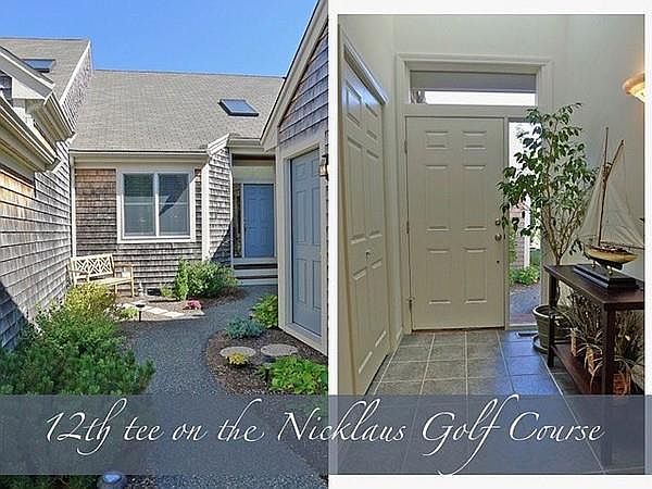 Location location location. Gorgeous and peaceful golf course view. Minutes to down town, golf and beaches. Beautiful Pinehills townhome overlooking the 12th tee box of the Nicklaus course. Granite, mahogany kitchen and bathrooms. Hardwood floors. New master bed and master bath. Stainless steel appliances. Built in surround sound. Master suite on first floor with large walk in closet and beautiful view overlooking deck and course. Oversized deck for entertaining. Partially finished walk out lower level can be used as 3rd bedroom with a full bath, walkout slider, and a living room. Large 2 car garage. Plenty of extra storage in basement. Condo fee covers pool, trash, snow removal up to front door, use of 3 pools, 4 tennis courts, the Stonebridge Club, fitness facility and Winslowe's View Meeting House for private gatherings or events. Motivated seller. Pinehills is a master community with shops, restaurants, financial and medical services.