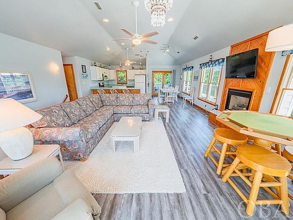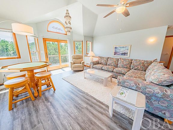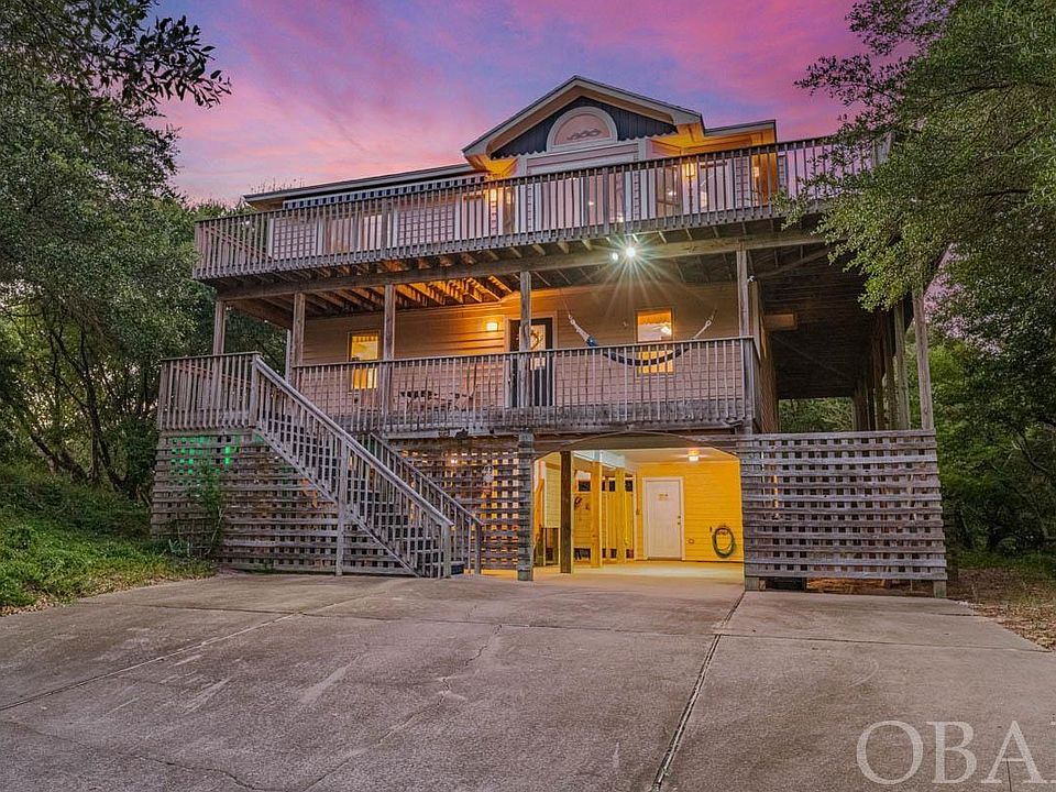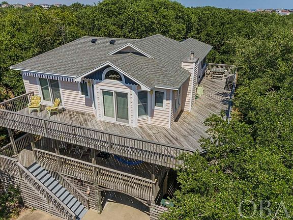 This gently used 4 bedroom (2 are primary with a private bath, and all 4 bedrooms have a private bath access) 3.5 bath home is located in the coveted Seacrest community of Southern Shores. Seacrest Village has no public beach accesses making the beaches highly desirable and secluded. Just a few miles from the Wright Memorial Bridge and an easy walk or bike ride to the Village of Duck! Tucked away from the road and nestled under a canopy of trees providing extra privacy. This charming turn-key beach retreat lives large and has a functional open concept. Boasting a dry entry, cozy screen porch, massive wrap around sun deck, extended outdoor living space underneath the carport, and the short walk to a direct beach access. The top level features a spacious great room with cathedral ceiling and lots of windows providing a "tree house" ambience; a large kitchen, powder bath, and a primary ensuite bedroom that includes a private deck access with a retractable awning for extra shade, and a private bath. Adjacent to the dining area is the cozy screen porch that's perfect for morning coffees or evening cocktails. The top level wrap around deck is massive and has plenty of gathering spaces. The mid-level offers an expansive 2nd primary bedroom with an Ensuite private bath, 2 more bedrooms that share a full bath (jack and jill), and a laundry room. This level also has the main entry door, and a covered deck making it a good space to enjoy a book in the comforting hammock. The exterior boasts a dry entry, an outdoor shower, a large storage room, and extended outdoor living with lots of lighting, and a string of lights providing a fun space to entertain friends and family. This home sits high and dry with no flood insurance required and just steps away from the biking/walking path to Duck Village. The drainfield was replaced in 2016, and a section of the top level deck has been reinforced for the potential of a hot tub along with the addition of a 220 volt breaker. A lot of the homes on Twelfth Ave are either 2nd homes or primary residences making the beach even quieter. A pool should fit, however the Buyer's Agent will need to verify. Recent upgrades; Concrete pad - May, 2018, Retractable awning - April, 2019, New Fortified Roof - May, 2021, LVP flooring upstairs - Feb, 2018, LVP flooring downstairs - Jan, 2019 New stove - Dec, 2019