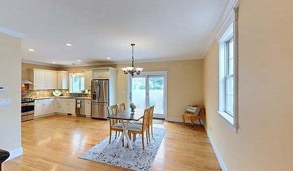 2011 well maintained townhouse with 5 bedrooms, 4.5 baths, it has 4 levels living. The first floor offers the popular open floor plan -- living room/family room with fireplace, half bath, granite kitchen countertop, and stainless appliances, dining area leads to the sliding door to the back yard patio. Second floor has master suite, laundry room, additional 2 bedrooms, 2nd fully bath. 4th bedroom on 3rd floor includes a fully bathroom, open area could be use as playroom or office/ guest room. 2-car garage. This location is convenient to public transportation, schools, shopping, restaurants, mass pike and more. No pets, no smoke.