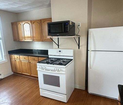 No Broker Fee! This charming unit boasts hardwood floors, high ceilings, a spacious living room with large windows that allow in an abundance of natural light. The eat in kitchen features granite counter tops, plenty of cabinets, gas range and dishwasher. Additionally there are 2 good sized bedrooms with big windows and closets and a full bath with tub/shower combo No pets Laundry on site Street parking Available now or 4/1 No broker fee!! First & Security at signing
