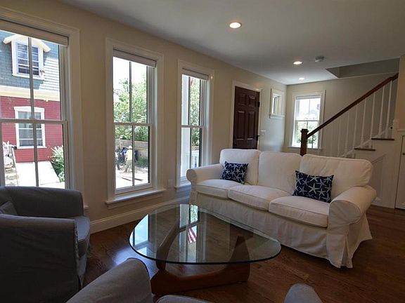 YEAR ROUND LEASE UNFURNISHED ONLY, NOT AVAILABLE FOR SHORT TERM OR SUMMER RENTAL. Newly built in June 2018, this home is tucked back from Second street in the point neighborhood of Newport, RI only one block from the water and the public Elm St Pier! The first-floor is an open concept kitchen/living area with a half bathroom, the kitchen features granite counters with subway backsplash, stainless appliances and large counter with stools and the living room is filled with light with large floor-to-ceiling windows. The second floor has a large bedroom, private bath with glass and tiled shower. The third level is the master suite, large walk-in closet and bath with double vanity with glass and tile shower. Both bedrooms can accommodate king sized beds. Featuring hardwood floors and recessed lighting throughout, A/C, Washer and Dryer and off street two car parking. The outdoor space contains a back patio and small yard in the front. The location is close to the Newport Shipyard, the Naval base, Newport harbor and minutes to shops and restaurants. Renter is responsible for paying all Utilities.