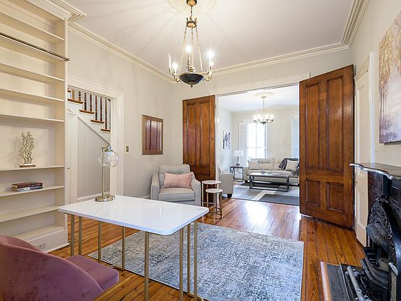 Enjoy living in this fully furnished, 3-bedroom 2.5-bathroom Victorian home with a 21' wide front porch that sits high immediately behind the Supreme Court. Beautifully designed for classical entertaining and enjoyable family living, it radiates warmth and welcome. Generous-sized living spaces, fabulous light, and almost floor-to-ceiling windows make this house a treat. The home features heart of pine floors, gorgeous chestnut French doors, deep crown moldings, and period fireplace mantels. Additionally, there is a rooftop patio atop the garage. This home offers three large bedrooms equipped with a king-size bed, queen bed, and a twin bed, providing comfortable sleeping arrangements for various needs. The classical charm extends to the fully equipped kitchen, perfect for preparing meals at home, complemented by beautiful heart of pine floors and chestnut French doors that add a touch of elegance. Parking is available for an additional $10 per day. Located just around the corner from the US Capitol and Congress, the Folger Shakespeare Library, and a few blocks from Capitol South Metro and Union Station Metro, this home offers easy access to Eastern Market shopping, Whole Foods, Trader Joe's, and wonderful restaurants, ensuring convenience and a vibrant local culture.