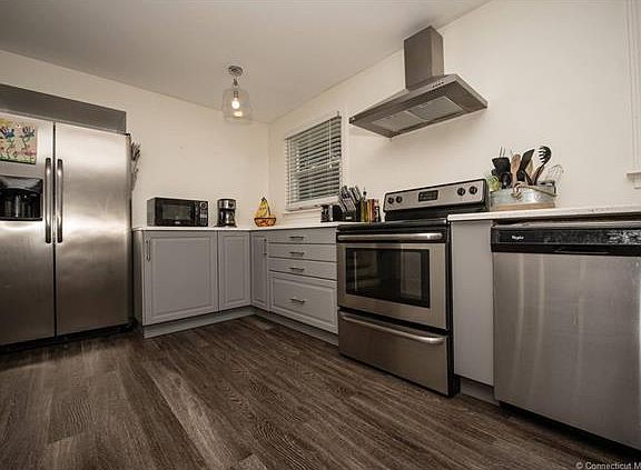 For more information on this home please call listing agent Debbie Huscher 860-918-4580. If the kitchen is your special room, this is the home for you! This adorable split level is updated with all the special touches. A renovation opened up the area giving you room to work and a sleek kitchen with stainless appliances, quartz counters, and farmhouse sink. Living room and all bedrooms have hardwood floors and of course, the bathroom is a triumphant remodel too. The lower level features a perfect family room or game room with sound proofing in the ceiling. Other improvements include replacement windows, water heater, electric and more. All in a great neighborhood with a backyard to enjoy.
