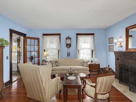 This updated two bedroom home delights with original woodwork, hardwood floors and pride of ownership. The main level contains a family room and living room with wood-burning fireplace that opens via an elegant archway to a spacious dining room. The charming kitchen has white beadboard cabinetry, Energy Star appliances, terracotta tile floors and separate built-in desk/ workspace. The large, renovated main bath impresses with a soaking tub, glass-enclosed walk-in shower, subway tile and elegant finishes. Upstairs you'll find built-in cabinetry and two bedrooms with walk-in closets. The lovely, level backyard delights with a brick patio, two pergolas and storage shed. Other highlights of this home include french doors, detached garage, walk-out finished basement with laundry room and many updates. Great location on a quiet side street yet close to highways. Walking distance to Capron Park, commuter rail and Attleboro center. Don't miss this gem!