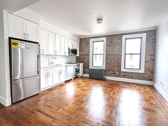 Flooded with natural lightExposed brickTop floorSpacious primary bedroomVersatile second roomModern kitchen with dishwasherUnobstructed nyc skyline views