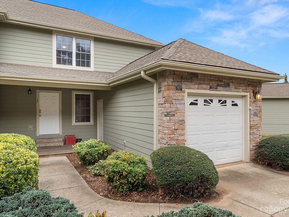 24 Aberdeen is an end unit townhome in the Lake Julian Trails neighborhood, a small community with mature landscaping and convenient location. The grounds are maintained by the community, giving you more time to spend with your family, friends, and doing what you love. The open and welcoming main level keeps people connected with comfortable living room, dining area and kitchen with bar top. Each upstairs bedroom has its own private full bathroom, while the downstairs bedroom that could also be used as a bonus room has its own half bath and sliding glass doors to the back deck. Throughout the home you'll find ample closet space, with the primary bedroom having a large walk-in closet, second closet and large linen closet in the primary bathroom. All of this and a garage!