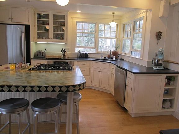 LOCATION and VALUE! This home is located on a dead end street only steps away from the bike trail and 1.5 mile drive to downtown Northampton! The kitchen is entirely remodeled with new lighting, slate counters, kitchen island, stainless steel appliances, maple flooring, which opens to the dining room with expansive double patio doors. The second floor has 3 bedrooms all with hardwood floors and a remodeled bathroom with radiant heat. The third floor is entirely finished and can be used as a family room, playroom, with expansion possibilities for an additional bath and bedroom. The three season porch is all enclosed and has an additional door leading to the nicely manicured backyard with many perennials and goshen stone walkway. Other recent updates include roof, siding, windows, doors, efficient gas buderas furnace, radiators ...nothing to do here but move in and enjoy the many benefits of living close to downtown.