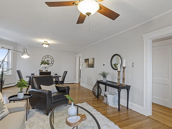 Wonderful three bedroom top floor unit with lovely horizon views from back enclosed porch. This unit has a new kitchen (2019) and has been freshly painted. The living room, dining room has been opened to allow for best use of space, if you want to host a party, (we will again!) you can make it a sit down for 20 or buffet for 40! The warm wood tones of the floors and the expanse of windows makes this unit full of sunlight. The kitchen, white and gray with new granite, stainless appliances and plenty of storage. Use one of the bedroom as a home office and you can work from home forever. With a bath and a half, along with in-unit laundry, you can't beat it. The location is phenomenal, steps to Union Square which makes it close to transportation, stores, restaurants and everything you need for urban living. Outside, this unit comes with a parking spot and the yard has been turned into an urban oasis, with vegetable garden and lawn. It won't last long, so get it between the snowstorms!