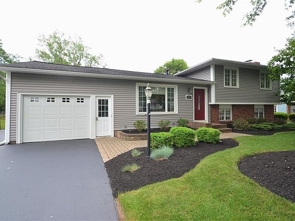STUNNING! Not your typical home! Step into the OPEN & vaulted kitchen area w/gorgeous exposed beams & tigerwood hardwood floors, maple cabinets, granite counters, stainless appliances & bonus mud room/cubby area! The updated main bath features marble heated flrs, cherry cabinetry, granite top & tiled tub surround! The AWESOME fam rm is highlighted by the custom fireplace, built ins and cherry cabinet office area! The 4th bedroom/den could be a great inlaw w/another updated full bath. Enjoy QUALITY craftsmanship, 6 panel doors, central vac, vinyl windows, updated roof & siding & BONUS HEATED garage! Plus an incredible privacy fenced yard w/covered deck area, brick paver patio w/firepit & super cool shed/playhouse!