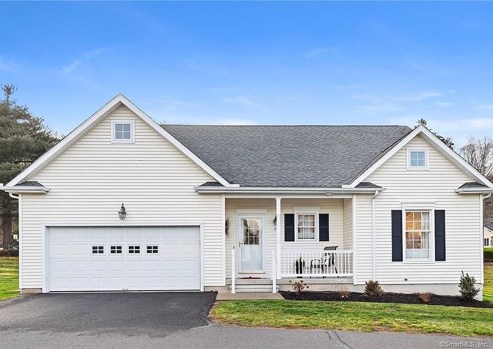 Rarely available, move in ready Ranch style home in sought after Blue Trail Crossing, a 50+ adult community. Built in 2006, this beautifully maintained, freestanding home offers maintenance-free, one level living in a charming enclave of 26 homes. Located in a quiet setting, the home features a spacious foyer leading to an open floor plan w/hardwood floors throughout. The living room has a cathedral ceiling, gas fireplace & surround sound speaker system, and opens to the dining area. Sliders provide access to the 20'x14' low-maintenance composite deck w/retractable awning, the perfect space for outdoor entertaining and relaxation. The kitchen is spacious and has an abundance of cabinet/countertop space, along with new stove & microwave. An opening between the kitchen and dining area keeps you connected with family and guests. The primary bedroom features an ensuite bath and walk in closet. The guest room has a double closet and easy access to an oversized guest bath with double vanity & curbless, roll in/no-lip shower. Other features of the home include main level laundry, gas heating, central air, central vacuum, ADA compliant door widths, lawn irrigation, 2 car garage and low HOA fee. The unfinished basement provides the opportunity for additional living space or ample storage. Conveniently located just 10 minutes to both Bristol and Southington's commercial centers for shopping, restaurants and other amenities. Blue Trail Crossing offers carefree adult living at its best!