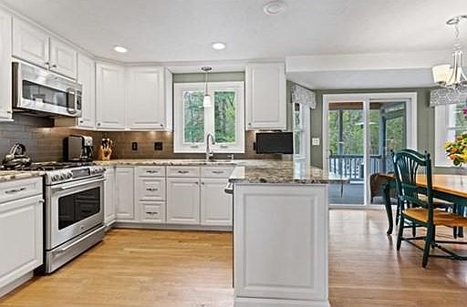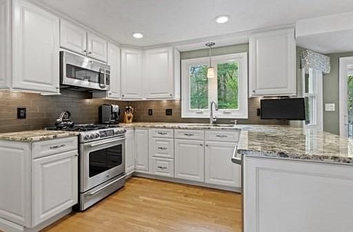Updated Throughout! Colonial w/ flexible open floor plan, is set on a meticulously manicured lot in desirable neighborhood; pride of ownership shows throughout the home. Remodeled kitchen w/ soft white cabinets with peninsula, pantry, stainless steel appliances, granite countertops, hardwood flooring, tiled backsplash & separate eating area w/ built-in cabinets. Open to the kitchen, the spacious family room w/ fireplace is a welcoming space to relax or entertain. Enjoy Summer meals and meals on the screened porch, expansive composite deck & above ground pool overlooks private yard Formal Dining Rm w/ hardwoods, chair rail & crown molding; Den/Liv Rm w/ hardwoods is a great office or quiet space. Master Bedrm w/ walkin closet & private updated bath w/ tiled shower. Remodeled main bath & 3 good sized bedrooms complete the 2nd floor. Lower level features generous playrm w/ surround sound, workshop & utility area. Irrigation system w/ well, brick stairs & attractive walkway. Town Sewer.