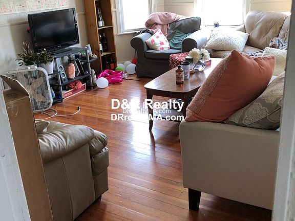 Large 4 BD 1BA. Great location, 4 blocks east of Davis Sq. New Granite counter tops along with new white modern cabinets. 4BD apartment one of the bedrooms is an enclosed porch but very spacious living room and kitchen. Common front porch and huge side and rear yard. Granite kitchen with stainless steel appliances. Bathroom is tiled and modern. 3rd floor in a three unit triple-decker building. 3 full sized bedrooms, one large in area but narrow rear enclosed private porch, large eat-in kitchen & living room, great regional views, very sunny. Common front porch and huge side and rear yard. Granite kitchen with stainless steel appliances. Bathroom is tiled and modern. Parking: On street. Utilities: Utilities are not included. Gas stove, gas-fired hot air heat, gas water heater. Common washer/dryer coin-op. Pets: 1 pet allowed. No additional fee. Available 9/1