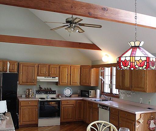 - RoomKitchenFeatures: Kitchen, Dining Area, Wood, French, Electric, Cathedral Ceiling(s), Ceiling Fan(s), Skylight, Beamed Ceilings