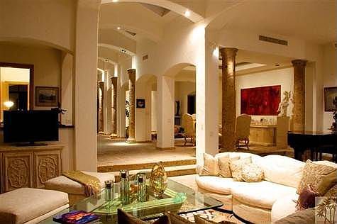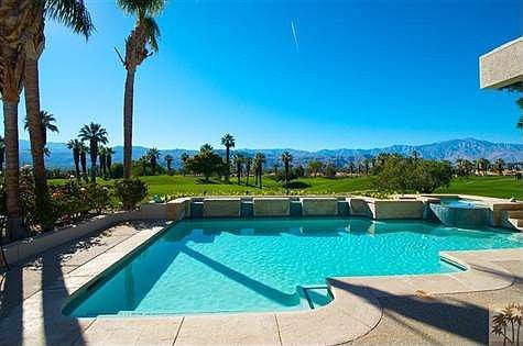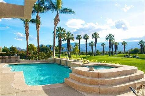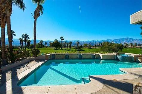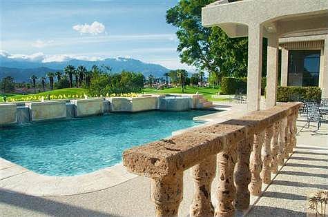 Clearly one of the best panoramic mountain views over rolling golf course fairways in the Valley! Located in a private enclave in Palm Desert at The Estates at Desert Springs Marriott. Here only 33 custom homes are offered packages of Golf, Tennis, Spa, Restaurants, Hotel Services and much more on the 13th T in the distance. Wow, you could have room service at home! An open floor plan featuring Cantera stone floors, accent columns, dominating fireplace, high ceilings, skylights, and even a tranquil water feature inside the home. 4 bedrooms, 5 baths. Est. 6100 sq. Ft., 3-car + golf cart. Large master bedroom suite has many windows allowing the views to pour into a bright and sunny suite w/separate his and hers baths. Separate guest casita. Spacious 4th bedroom is being used as a media/game room with Macintosh projection system, and could be a very spacious guest suite. Outdoor living equally impressive: large pool/spa, waterfalls, BBQ center, counter seating and Panoramic mountain VIEWS!
