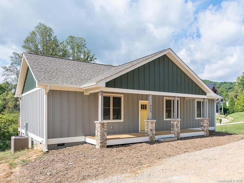 Quality new arts & crafts style home just 10 minutes from downtown Asheville, but with lower Woodfin taxes. A lovely rocking chair porch with beaded wood ceiling welcomes you. Step inside and look at the gorgeous teak 6" wide plank floors, and then look up to 9' and vaulted ceilings with crown moulding. Take in the central stone surround gas fireplace with 4" solid teak mantel. Your kitchen boasts beautiful gray cabinetry with granite counters and black stainless appliances, & opens to the laundry room. Kitchen, baths & laundry are custom tiled for durability. The dining room is adjacent to the kitchen and opens to the deck overlooking the large sunny back yard that rolls down to a creek. The split bedroom plan offers a spacious master suite with granite topped dual sinks, a large walk-in tiled shower and a great walk in closet. From the fiber cement siding to the tilt to clean windows to the kitchen & bath solatubes, fine finishes & attention to detail are obvious.