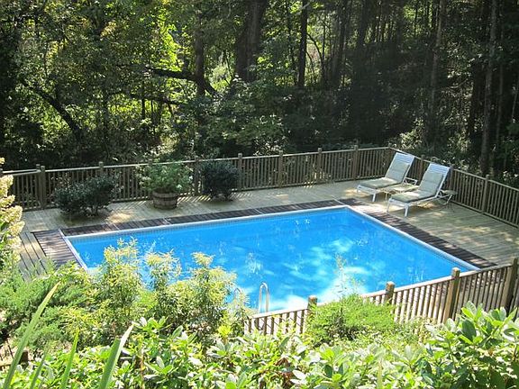 This interesting contemporary home is priv. sited amidst lush gardens, w/distant views from the balcony. The pool is tucked discretely into a deck & is surrounded by mature gardens. The foyer, 2 BR's & full bath are on the 1st level. Upstairs, a lovely flow of the Fam. rm. w/wbs, a DA, an EIK & balcony. The LR has French Drs & 2 seating areas. The mst. BR has views of the pool. The spiral staircase leads to the loft which is perfect for an office or as a guest room. The exterior of the home was repainted in 2014. Motivated seller!