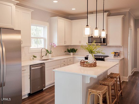 Move In Ready, The Newberry by Logan Homes in Camellia Banks, a MARSH FRONT community in Beaufort. Every aspect of this charming 3 bedroom 2.5 bath is enticing. The exterior offers a warm Southern welcome to the coastal lifestyle. From the large, open-concept living and dining areas to the well-appointed kitchen with a center island, gas range, and walk-in pantry! Completing the first floor is the large master bedroom with a vaulted ceiling, dual closets, and a beautiful master shower. The sizable laundry room is conveniently located across from the master bedroom. The second floor features two additional bedrooms, a rec room, and walk-in attic storage. **Interior photos are of model home and not this home ** $5000 in closing costs!