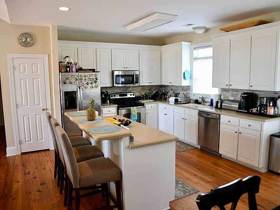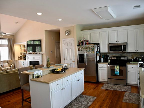 You Found It! Beautiful coastal home in gated resort community with spectacularviews of golf course and Big Bay Creek. Quick access to beach through privateresort entrance. Let the golf course be your back yard! Walk to restaurants andshops across Docksite Road near Wyndham main entrance or Ella & Ollies next totennis courts and golf pro-shop. Passes to Wyndham's pools, playgroundminiature golf and fitness center available for purchase. Large deck on front ofhome with adjoining screened porch is the perfect spot to watch golfers andwildlife. Battery Park's cul-de-sac design makes through traffic non-existent. Mosthomes in the neighborhood are full-time residents. Large area underneath home provides space for multi-car covered parking as well as hosting family cookouts and gatherings. Large climate controlled storage room allows for storage of beach toys, chairs and tools and includes bonus refrigerator and chest freezer. Take the electric lift to the main floor where you will find beautiful pine floors in open concept kitchen, dining and living rooms with a gas fireplace. Vaulted ceilings with large windows and doors provide lots of light and beautiful views. Dedicated laundry room and lots of storage closets are a plus. Kitchen features solid surface countertops, stainless steel appliances including double door refrigerator/freezer, dishwasher, smooth top stove/oven, built-in microwave and disposal. Plenty of cabinets including three top eat-in bar. Split bedroom floorplan offers king sized Master suite with walk-in closet and double French doors accessing the screened porch. Master bath includes double vanities and large tiled shower with double shower heads and built in seat! Remaining two bedrooms on other side of the house both have full baths, one with walk-in closet and the other with two full closets. House features enclosed outside shower with hot & cold water, triple stainless-steel sink to clean your catch and custom metal panel hurricane shutter system! Fully landscaped yard with lighting and Rain Bird irrigation system. If you are looking for move-in ready home then you had better hurry! All furniture stays with a couple of exceptions.