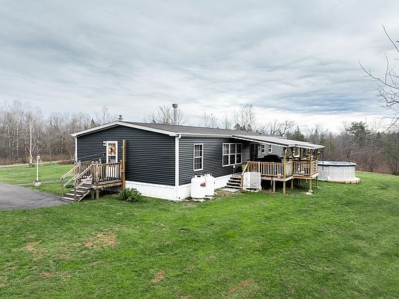 HOME WITH ACREAGE!! Just over 10.50 surveyed acres of peaceful, privacy awaits you. This ranch style home offers one level living with 3 bedrooms, and two full bathrooms. Master ensuite with double sink vanity, stunning tiled, walk-in shower, and walk-in closet is sure to please. You will enjoy cooking on your gas stove with griddle. Beautiful, extra large island with stainless, upgraded workstation sink. Finished in 2021 this is not your average manufactured home! Quality construction throughout includes; 40lb roof construction with ice guard, wind wrap and OSB sheathing, efficient vinyl windows, cabinets made with real wood doors and stiles, 2X6 walls and wood burning fireplace to name a few! Park the all cars or toys in your 3 bay garage. Take a break outside under your covered deck and enjoy your scenic pond or take a swim in your pool! Schedule your private tour today and make this beautiful property your next home!