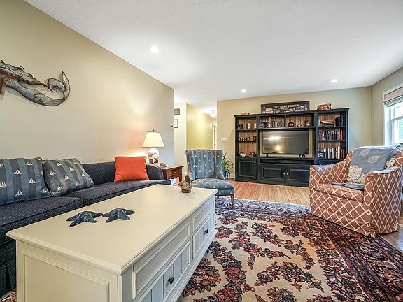 Spacious custom-built, oversized ranch with water views of Lake Wequaquet. Offering over 2,000 sq. ft of thoughtfully designed living space in a desirable open flood living style. Three spacious bedrooms, two and a half baths, master suite with a private bath, hardwood floors throughout. Newer roof and high-efficiency furnace. The large great room features a raised hearth fireplace with floor to ceiling brickwork ideal for entertaining or relaxing with family and friends. Oversized two car garage and first floor laundry room. Great for year-round living or as a summer home. Plenty of natural light and views of the lake. The walk up attic offers extra space for potential expansion as well as a full-size basement with high ceilings and another fireplace. Nice opportunity to own a home in the desirable Lake Wequaquet area. This home offers a perfect balance of comfort and timeless style with plenty of space for everyone. Conveniently located with easy access to the highway, golf courses,