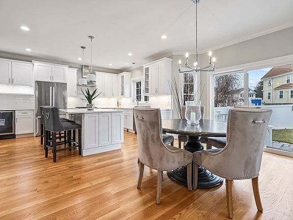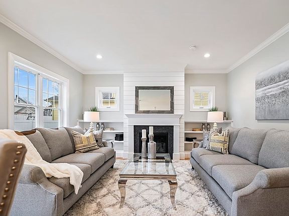 NEW 2023 Masterpiece with high-end designer finishes throughout! 24 BELLE AVE offers 10 rooms, 4 bedrooms, 2.5 baths & garage parking in a coveted West Roxbury neighborhood! The thoughtfully designed floor plan is a perfect blend of timeless craftsmanship and modern-day living! An open-concept floor plan offers contemporary space perfect for both private moments along with grand entertaining! The Showstopping kitchen has custom soft close cabinets, BOSCH stainless appliances, quartz counters, wine storage & tile backsplash! Stunning living space with multiple fireplaces, soaring ceilings, wainscotting, and built-ins. Every detail has been thoughtfully considered to the highest standards. French doors open to the gorgeous main bedroom suite with a cathedral ceiling, fireplace + bookcase, custom double walk-in closets & spa-like bath! Full basement & walk-up attic! All this is beautifully situated on 6,668 SF of land with a porch, deck & patio for your dream garden! This home has it all!