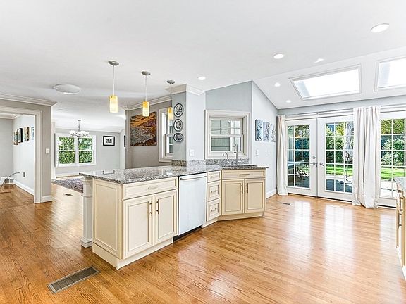Stone colonial nestled in heart of Newton Corner. About 4,000SF offering 5 bedrooms, 4 baths, hardwood flooring, wood-burning fireplaces, in-law suite, finished basement, and fenced in backyard. Grand open kitchen with high-end appliances, paneled refrigerator, double wall-oven, 6-top gas burner with range hood, and large granite counters. Breakfast area off kitchen offers natural light with two skylights, and double French doors to direct yard access. Dining room with charming wainscoting and large windows. Spacious living room with bay windows and wood-burning fireplace. Large open family room adjoins first floor in-law suite with walk-in shower and yard access. Elevator access to second level consists of 3 bedrooms, 2 full baths, laundry, and sizable den. Upper level with King-size bedroom, two walk-in closets, custom tile bath, dual vanity, and shower/tub combo. Finished basement with additional fireplace. Located on tree-lined street close to I-90, Newton Centre, and Newtonville.