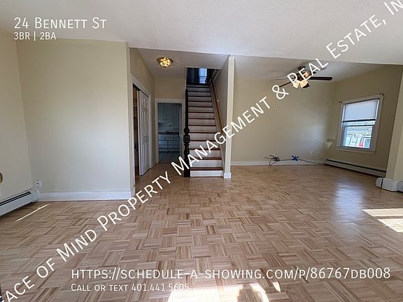 Welcome to 24 Bennett Streeta beautifully maintained 3-bedroom, 2-bathroom. The first floor has large living room with hardwood/parquet flooring and a large coat/storage closet with natural light. The eat-in kitchen with white wood cabinets, gas stove and refrigerator. 1 full bathroom with tub/shower. 1 bedroom with wall to wall carpet and roomy closet. The upper level has another full bath with tub, two bedrooms with carpets and closets. Basement has washer/dryer hook-ups. Parking for 2 smaller vehicles. No smoking. 1 cat okay. First and Security required to move in for qualified tenants. *Group showings are scheduled for Wednesday and every other Saturday at the allotted time. We do not charge an application fee and do not receive applications from other companies or online services. We only receive and process our own applications which you can download on our website. Application process is FREE! We will check your credit report, criminal record, landlord, and employer references.