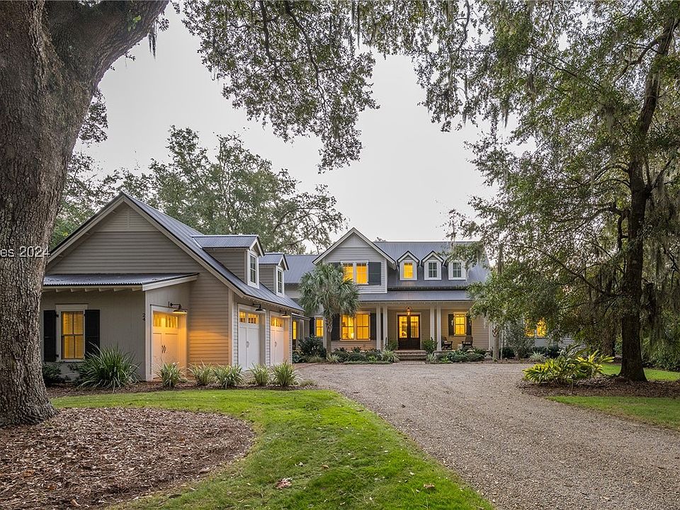 24 Bennington Road is a 3 bed, 2.5 bath coastal farm-style home on .89 acre in the Barge Landing neighborhood of Palmetto Bluff. Boasting 3,053 sq ft of space, the home’s interior exudes classic Lowcountry style from the soaring ceilings of the great room to the reclaimed floors. The primary suite enjoys ensuite laundry, large bath and closet. The second story walk-in storage flanks two bedrooms with shared access to a full bath. The expansive screened porch enjoys views across a private lagoon to protected forest. The property offers a 2-car garage with a cart port, a large study on the ground floor and a spacious gourmet kitchen.