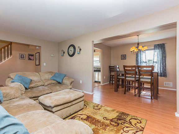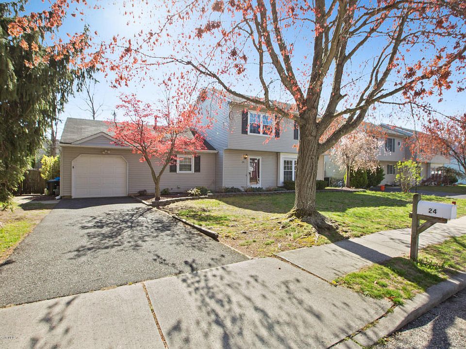 Set up your appointment or you'll miss this one! Move right in to this 3BR center hall Colonial situated in a quiet neighborhood. Entertain in your spacious living room where the bay window brings in tremendous light or your formal dining room with a view of the backyard. Enjoy preparing meals in your updated eat-in kitchen w/ white cabinets & stainless appliance package. Seamlessly flow between your kitchen and open family room. Laundry on first floor. Sliders exit out to your back deck and large, fenced, green yard. 2 guest bedrooms sit upstairs w/ more than ample closets plus the Master bedroom affords you a walk-in closet, and access to the full bath, w/ two vanities. New vinyl windows. New vinyl sliding door. Updated bathrooms with newer fixtures & vanities. Close for commuters!