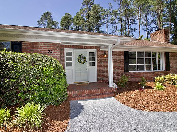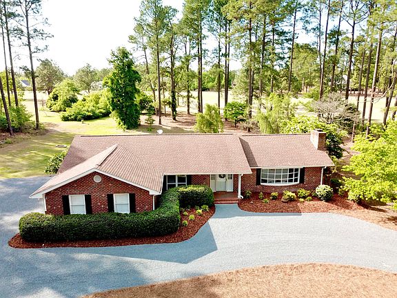 Fresh, bright and open on 1.29 private acres, this ranch-style, golf-front, 3-bedroom, 3-bath home is move-in ready and sparkling clean with tons of new upgrades--fresh paint, new carpet, new ductwork, new ceiling fans, refreshed landscaping and new gravel. The home has a split-bedroom floor plan, and hardwood floors throughout with a HUGE Carolina room that overlooks 280 feet of golf frontage on the Foxfire golf course and several mature blueberry bushes!