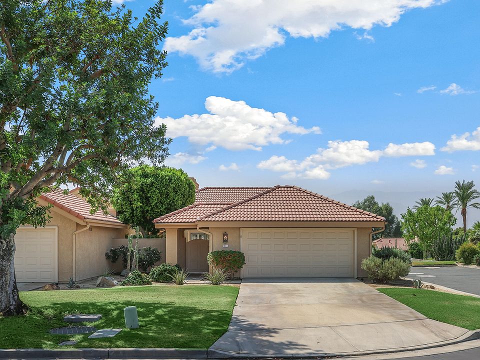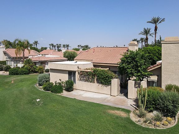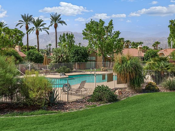 Looking for a fully detached condo with a two-car garage that feels like home? Look no further! Located on a greenbelt in the highly coveted Silver Sands Racquet Club on a prime corner location near a sparkling pool with spectacular unobstructed South facing panoramic mountain vistas, this 2 bedroom/2 bath condo is ready for new owners. A large private gated courtyard which wraps around the property welcomes you to your front door and provides ample space to entertain on all scales (built-in BBQ) and would be perfect for pets. Inside, the open floor plan features vaulted ceiling in the living room, a cozy fireplace, a kitchen with plenty of storage, a breakfast bar, multiple sliders & windows and beautiful natural light in all rooms as well as great separation of bedrooms. Enjoy additional piece of mind with a newer HVAC system. Silver Sands R.C. offers an active social program with a clubhouse 15 pools and spas, a fitness center & multiple tennis and pickleball courts...looking also for an easy move in? This condo is offered turnkey furnished...just bring your toothbrush!