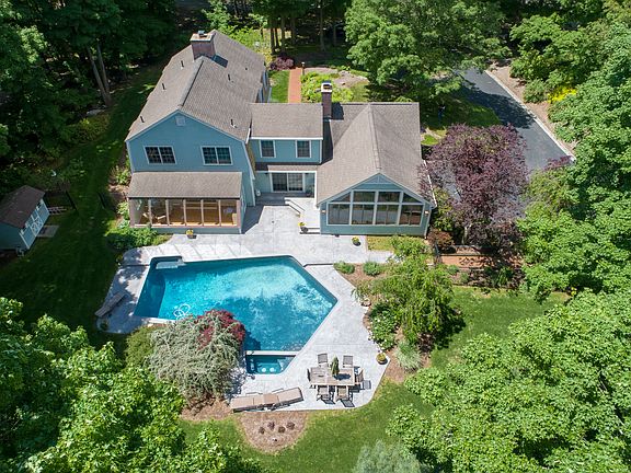 A home for all seasons! Freshly painted and staged, this attractive gambrel set on a quiet country lane near Essex Village welcomes you with open arms. The 1.22 private acre lot is professionally landscaped and punctuated by perennial beds, specimen plantings, stone walls, fences and mature trees. A fabulous gunite heated pool with spa and terrace make the home a summer paradise. In the cooler months, the solarium and separate sunroom are perfect places to relax and rejuvenate while two fireplaces, one on the formal living room and the other in the family room help warm the New England winter nights. For those who enjoy entertaining, the newly renovated chef's kitchen is stunning. Bead board cabinets, honed granite counter-tops and premium appliances are signatures of this beautiful room that opens to the both solarium and formal dining room. On the main level there is a library/ den and bedroom with walk in closet and full bath ideal for an in law suite or first floor master. On the upper level is the Master Bedroom that enjoys a large bath, dressing room and overlooks the pool. Three additional bedrooms with an updated bath complete the floor. For those who like to hike or commune with nature, the property is steps to the both Canfield Woods Preserve and Doane Woods with its many trails. Close to Interstates 95 and Route 9, the property is easily accessible to Hartford, New Haven, New York or Boston. Enjoy living in Essex, one of Americas Best Small Towns!