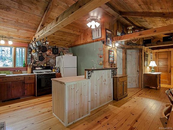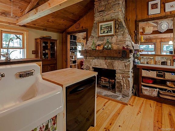If you have always dreamed of living amongst the trees in NH, this home has all the wonders of NH with the convenience of Putnam and amenities just minutes away and easy access to highways for commuting to Boston, Hartford and Providence. Surrounded by protected land, this home has a woodsy magical feel that you won't find elsewhere. What was once an 800sqft cabin is now a beautiful 1500sqft three bedroom after extensive updates, renovations and additions! There are beautiful wood floors that run throughout the home and an amazing eclectic feel that blends the rustic and the new seamlessly. The beautiful stone fireplace is a centerpiece from the original home and allows for fires in both the kitchen and living room for wonderful warmth in the winter and the surrounding trees keep the home cool in the summer. You'll enjoy the tremendous outdoor space that surrounds this home, from skiing on the trails in the winter, extensive hiking and the short walk to the beach at Pulaski Park. The home is surrounded by thousands of acres of protected land. The Connecticut side of the property as well as the 3/4 mile drive to the house is owed by the Windam Land Trust. On the Rhode Island side of Border Trail, the property is surrounded by Pulaski State Park and the George Washington Memorial State Forrest. A home like this doesn't come on the market often, don't miss this amazing opportunity!