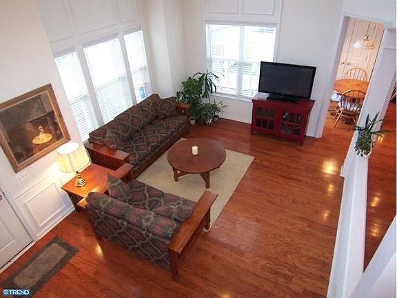 Lowest priced townhouse in the desirable and very active 55+ community of Centennial Mill offers a meticulously maintained neighborhood setting, spectacular 16,000 ft clubhouse and full health club w/indoor pool & spa, a list of clubs and activities too numerous to mention, convenient location for shopping and Philadelphia. This original owner 2 bedroom, 2~~ bath corner townhome offers cathedral ceiling in living room with tinted windows, gleaming hardwood floors t/o most of 1st floor, generous room sizes, loft sitting area, plenty of room & storage, builder upgrades such as gorgeous molding throughout, MBR tray ceiling, recessed lighting. Add~~~l upgrades inc a beautiful eat-in kitchen with 42~~~ cabinets, gas cooking & all apps, 2-car garage, walk-out balconies from each bedroom for spectacular views. Neutral colors to complement any furnishings & pristine clean. Nothing to do but move in and make new friends while enjoy a rewarding lifestyle!