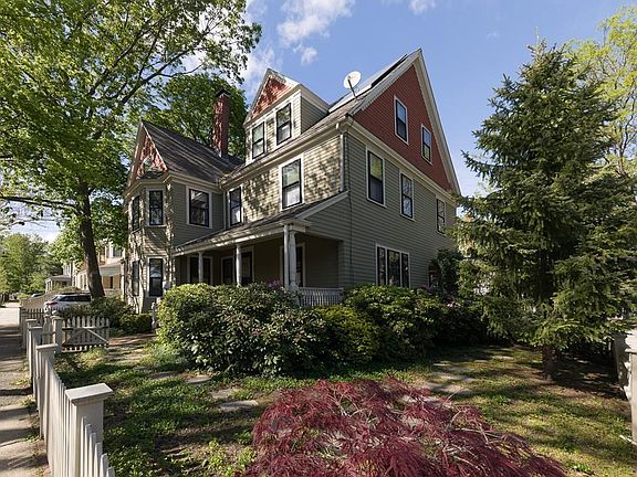 Radcliffe area shingle style Queen Anne attached single family house, built in 1894, has been tastefully updated and is ideally located near to the shops and restaurants on Massachusetts Avenue, while maintaining a sense of neighborhood in a leafy, quiet setting. This welcoming home is entered from a broad front porch into the stair hall with a living room with bay window, dining room with fireplace, upgraded kitchen, half bathroom, and stairs to the partially finished basement with a private home office. The second floor has two bedrooms and a tiled bathroom plus a sizable music room/family room. The spacious master bedroom suite on the third floor has a renovated bathroom and double dressing room/closet. There is one off-street parking space. This unique home combines historic details with significant updates, and is on the market for $1,950,000. Sellers to review any and all offers on Tuesday, October 15m at 4:00 p.m.