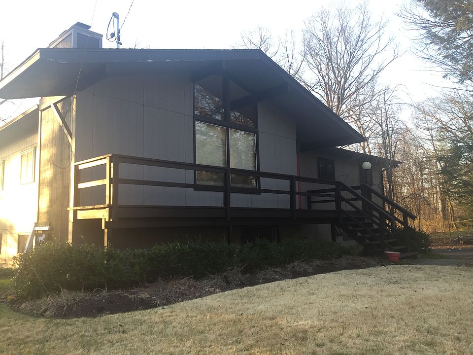 Now at a great price. Enjoy one-level living in this bright and stylish contemporary ranch with hardwood floors, finished walkout basement. Move right in...newer major updates include roof, gutters, furnace, exterior and interior paint, septic tank. Vaulted ceiling, master bedroom suite with updated master bath as well as second full updated bath. Living room has floor to ceiling windows, wood-burning fireplace. Finished basement features second wood-burning fireplace, half bath, family room, more. Nice floor plan, front and rear decks, two-car garage.