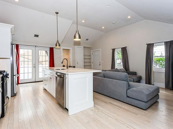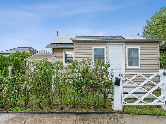 Completely remodeled cozy and charming 2 Bedroom 1 Full Bath beach bungalow in perfect condition! This bright open-concept home welcomes you with cathedral ceilings, warm wood floors, crisp white cabinetry and a gorgeous quartz kitchen island. Additional benefits include central air, energy and cost saving solar panels, updated stainless steel appliances, attached garage with driveway, and outdoor deck for entertaining
