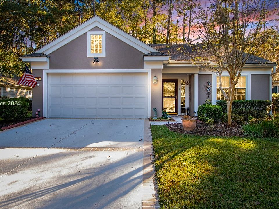 Welcome to this upgraded Heron model in Sun City. Situated on a private cul-de-sac with forest preserve views. Features 2bedrms, 2bathrms, a den, & an open floor plan. Enjoy the bright 4-season room with tile flooring and appreciate the wood & tile floors throughout. The kitchen has natural gas stove, quartz countertops, & white appliances. New roof (2019), HVAC replacement (2016). The home also features attic storage, 4ft garage ext, tech shield, French doors on the office, comfort height commodes, raised vanities, a large walk-in shower in the owner's suite & custom window treatments. An extensive list of updates is available upon request.