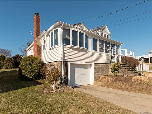 VIEWS OF THE WATER AND THE BEACH! Enjoy year round fun at GIANTS NECK BEACH! One of the best kept secrets in SOUTHEASTERN CONNECTICUT. Not your ordinary beach association! Many homes are year round &there is pride of ownership. 5 minute walk to two beautiful sandy private beaches. Enjoy paddle boarding in the cove area, sailing your sunfish, swim to the "raft", water ski in the "creek" or just read a book on the beach. Only one entrance into this private enclave means excellent areas for walking your dogs, riding a bike or running. Fantastic sunrises from this home's front porch and living room with views overlooking GRISWOLD ISLAND& OLD BLACK POINT.This home has been in the family since 1964 and the owners have enjoyed every minute! Original ship lapped paneled walls,hardwood floors, open floor plan,brick fireplaced living rm & 2 generous sized bedrooms. This home is YEAR ROUND,oil baseboard heat and features CITY WATER &SEWER unlike many other beach communities. 1-car garage perfect for kayaks, boogie boards and your other beach supplies.This community is active year round.Beach dock for rent for smaller boats & moorings available. Clubhouse can be rented for private functions too.Association has a dock with slips to rent when available.Moorings also available in the bay area for rent. Easy access to I-95. 2 hours to NYC.Walk to ROCKY NECK STATE PARK/ BEACH.Homes rarely are available in this association.NO FLOOD INSURANCE NEEDED Welcome to Summer!