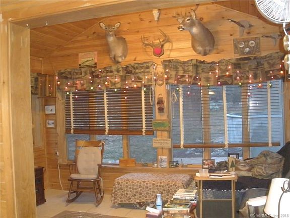 Stunning log home in the heart of East Hampton! Enjoy this country oasis on over 16 acres, zoned for farm use. Sit outside on the front deck or enjoy the pool in the back. Every room in the house has skylights and recessed lighting. The kitchen includes a large island with lots of storage. Beautiful double-sided fireplace compliments the kitchen and living room area. Master bedroom suite boasts a full bathroom with a large double-headed shower. Relax in the cozy family room next to the kitchen, with direct access to the back deck. This home also has a full finished basement with a half bath that can be used for a home business, or converted into an in-law apartment. There are a variety of desirable features in this rustic home that are a must see!