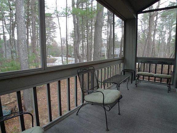 CALL NANCY KINGSTON! NEW LISTING. Live in a beautiful setting surrounded by 62 acres of woods and nature trails. This 6 room 2 bedroom condo is an end unit featuring a screen porch, wood burning fireplace, plus the additional space and light of an end unit. Open concept 1st floor living to kitchen with hardwood and tile floors. Two 2nd floor bedrooms with full bathroom and extra storage space. Finished room in basement makes for a great office, family room or guest space with plenty of storage and laundry. Great commuter location to shopping, 101, and schools.