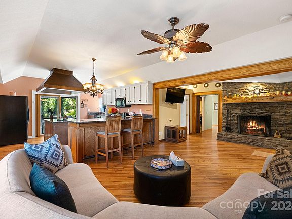 Nestled in the mountains with direct access to the Pisgah National Forest, 4+ acres with trails to hike and explore the Pisgah Forest and view the Blue Ridge Mountains. This spacious 2-bedroom Mt. home has an open floor plan, a wood-burning fireplace, a full kitchen, a dining room, a large walk-in shower, and a laundry room. There is a screened front porch perfect for enjoying incredible views of sunrise and sunset. Amenities include a large deck with a hot tub, an outdoor free-standing fireplace, and a gorgeous cascading waterfall, all in the privacy of the backyard. There is an abundance of wildlife and beautiful flower gardens to stroll through, with a granite bench to meditate and inhale the fresh mountain air. The acreage offers additional build sites featuring long-range beautiful views! County taxes only. Selling as a turn-key, HIGHLY PROFITABLE short-term rental with all furnishings, linens, dishes, and outdoor items included. NO DRIVEBY PLEASE! APPOINTMENT ONLY!
