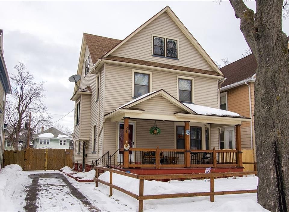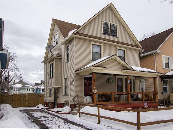 Welcome to 24 Bryan...and the tree lined Streets of the Maplewood Neighborhood! This Captivating Colonial transformed over the past 7 years..sits on a quiet one-way street...vinyl sided with 4bdrms and 1.5 baths with beautiful hardwood and ceramic floors throughout..thermopane windows and updated kitchen with first floor laundry. Finished basement and newer furnace with glass block windows and fully fenced in yard.