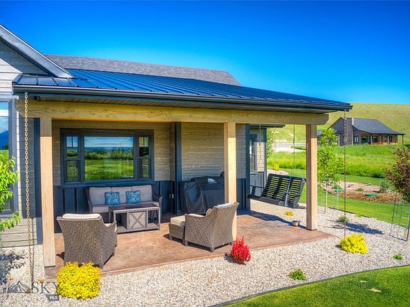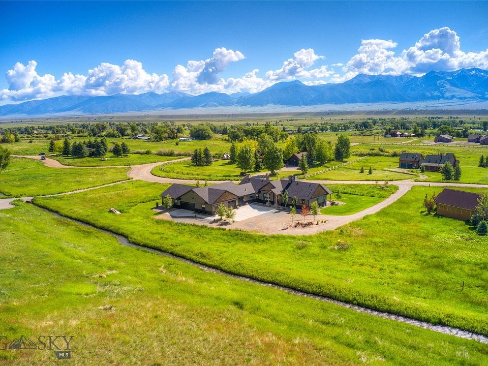 This stunning custom 3 bed/2.5 bath home with a covered patio offers breathtaking views of the Madison Mountains. Finishes include exterior LP siding with metal, cedar & rock accents, engineered hardwood flooring throughout, moss-rock fireplace, fir ceilings, quartzite counters, 9ft ceilings with 20ft vault in the living room . The kitchen has been perfectly designed for the discerning chef featuring custom soft close alder cabinets with pull-outs, a large pantry, double ovens, 5 burner gas stove . The master suite is 18x18 with15ft vaulted fir ceiling with door to patio with hot tub as well as a walk in closet. The master bath features large custom tiled walk-in shower with the Moen double head shower system as well as a double vanity. There is also an office and a flex room which can be used as a small gym. There are 2 additional bedrooms with a full bathroom and an oversized tub/shower with custom tile. A 725 sq ft bonus room off the garage will make the perfect additional guest area, play, movie or craft room as it has a gas fireplace as well as a mini split for heat and a/c. The 1800 sq ft 3 bay garage is finished, heated, and has floor drains. There is also a 4th door on the side to pull in your ATV or boat. The landscaping is nicely finished with 15 trees, 15,000 sq ft of sod and UG sprinklers. Located 2 miles from the Madison River & 15 mins to Ennis. This upscale subdivision has an active HOA and covenants to protect your investment