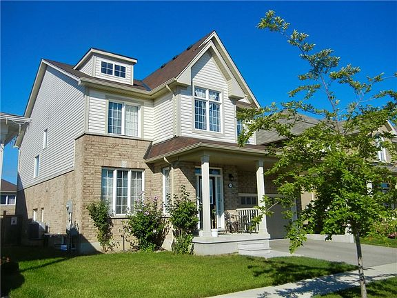 West Brant. "Lanier Model" 4 Bedrooms. 2.5 bathrooms. 2864 sq. ft. Immaculate and extremely well cared for. A spacious foyer welcomes you home. Carpet free. White oak hardwood throughout. Hardwood staircase w/wrought iron spindles. 9 FT ceilings on main. Upgraded trim and baseboards. Open concept kitchen and great room. Separate dining / family room. Bonus den / home office located off the kitchen. Eat in kitchen features breakfast bar, dinette area, upgraded cabinets, sink and faucet, quartz counters, glass back splash and pantry. Main floor 2 piece bath, mudroom, Dlb car garage with inside entry. Sliders open up to a deck and fully fenced yard. 2nd level features a large master bedroom with a 5 piece ensuite - soaker tub, Dlb sinks, glass shower and water closet. His and her s walk in closets. 3 more generous sized bedrooms, a 4 piece main bath and bedroom level laundry. The basement is awaiting your finishing touches with larger windows, cold room and rough in. Conveniently located to everyday amenities. Schools, parks, trails and transit. Move in Ready! Just needs You!